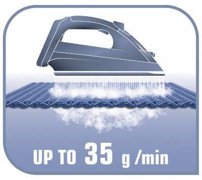 Osiągnij dużą wydajność i szybkość prasowania dzięki wytwarzaniu pary na poziomie do 35 g/min. Para wnikając w tkaninę rozluźnia jej włókna, co ułatwia rozprasowywanie zagnieceń.