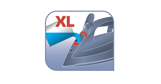 Szeroki otwór na wlewanie wody usprawnia obsługę żelazka i zapobiega rozlewaniu wody.