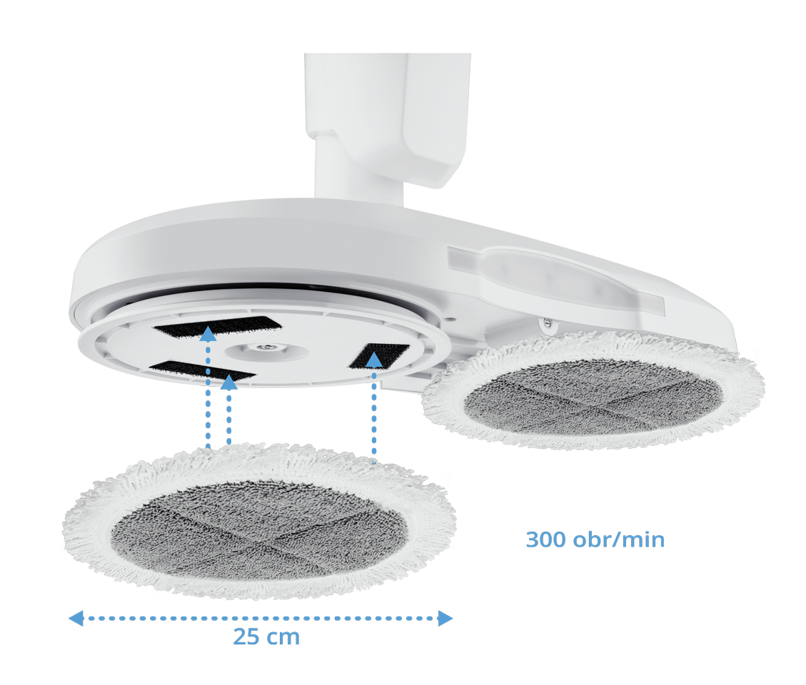 - Nałóż mopy z mikrofibry na głowice obrotowe urządzenia.