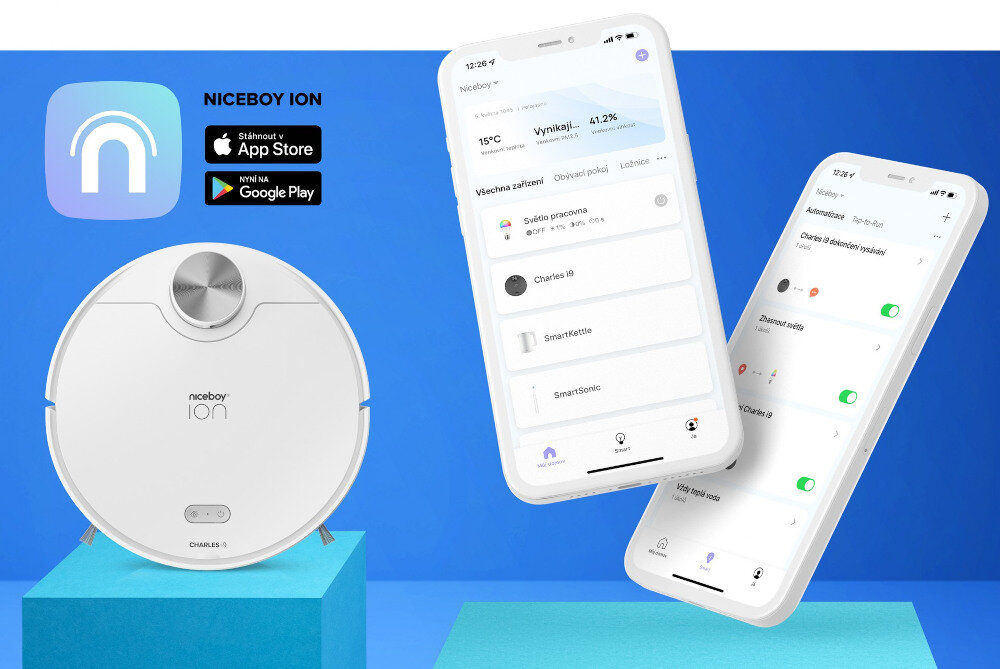 Dzięki aplikacji mobilnej Niceboy ION masz pod kontrolą wszystkie Twoje inteligentne urządzenia ION. Z pomocą wielojęzycznej aplikacji Niceboy ION (łącznie z językiem polskim) łatwo zaplanujesz sprzątanie w dowolnym czasie i z dowolnego miejsca, jak tylko potrzebujesz. Wyślij zdalnie swojego Charlesa i9, aby odkurzył lub umył wykładzinę, zaprogramuj dla niego własny harmonogram sprzątania w określonych przez Ciebie godzinach, to wszystko wraz ze szczegółowymi danymi statystycznymi związanymi z przebiegiem sprzątania.