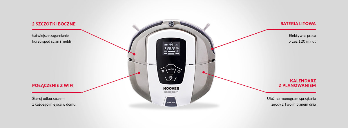 Dzięki 68 mm wysokości ten odkurzacz jest w stanie odkurzyć każdą przestrzeń. Steruj nim za pomocą pilota lub głosu i nie martw się więcej odkurzaniem. Robo.Com3 zajmie się tym za Ciebie. Skutecznie!
