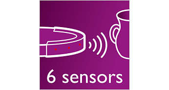 | Czujniki podczerwieni do wykrywania i unikania przeszkód Nowy odkurzacz automatyczny/robot firmy Philips jest wyposażony w 6 czujników podczerwieni umożliwiających wykrywanie i unikanie przeszkód, takich jak ściany, lampy lub przewody, aby urządzenie mogło bezpiecznie wyczyścić podłogi. |