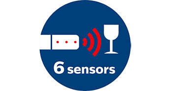 Czujniki podczerwieni do wykrywania i unikania przeszkód Nowy odkurzacz automatyczny/robot firmy Philips jest wyposażony w 6 czujników podczerwieni umożliwiających wykrywanie i unikanie przeszkód, takich jak ściany, lampy lub przewody, aby urządzenie mogło bezpiecznie wyczyścić podłogi. |
