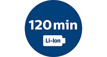 | Akumulator litowo-jonowy o dużej mocy zapewnia 120 minut pracy Wydajny akumulator litowo-jonowy ma dłuższy okres eksploatacji i ładuje się szybciej niż standardowe akumulatory. Nowy odkurzacz automatyczny pracuje nawet przez 120 min. |