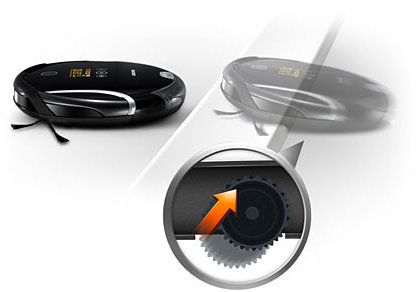 maszyny sprzątającej Otwarte drzwi zatrzymałyby większość odkurzaczy-robotów na ich trasie, lecz ta zasada nie dotyczy NaviBota-S. Gdy urządzenie napotka próg drzwiowy, kółko z funkcją wspinania aktywuje zwiększony nacisk, umożliwiając tym samym płynne przemieszczanie się robota przez progi lub kable, a także inne przeszkody na podłodze do wysokości 1,5 cm. |