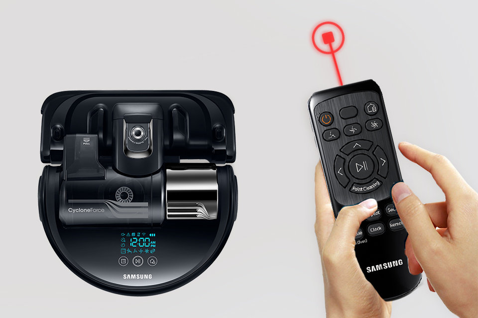 Point Cleaning™ daje możliwość sterowania odkurzaczem przy pomocy pilota, który wskazuje urządzeniu konkretne miejsce czyszczenia. Umieszczony w pilocie wskaźnik rzuca na powierzchnię podłogi czerwony punkt, za którym podąży nasz odkurzacz we wskazane miejsce.