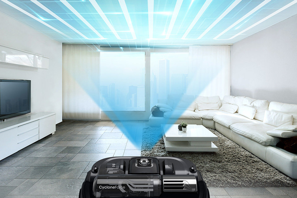 System Visionary Mapping Plus™ umożliwia nakreślenie i prowadzenie odkurzacza optymalną trasą do szybkiego i precyzyjnego czyszczenia. Zastosowanie w urządzeniu wysokiej jakości czujników oraz kamery cyfrowej pozwala stworzyć mapę domu i wytyczyć najefektywniejszą ścieżkę sprzątania.