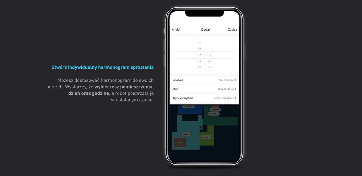 Kontroluj pracę urządzenia dzięki aplikacji Tefal Xplorer. W aplikacji możesz zaplanować harmonogram sprzątania, edytować mapy mieszkania oraz na bieżąco monitorować postęp prac robota, nawet gdy nie ma Cię w domu!
