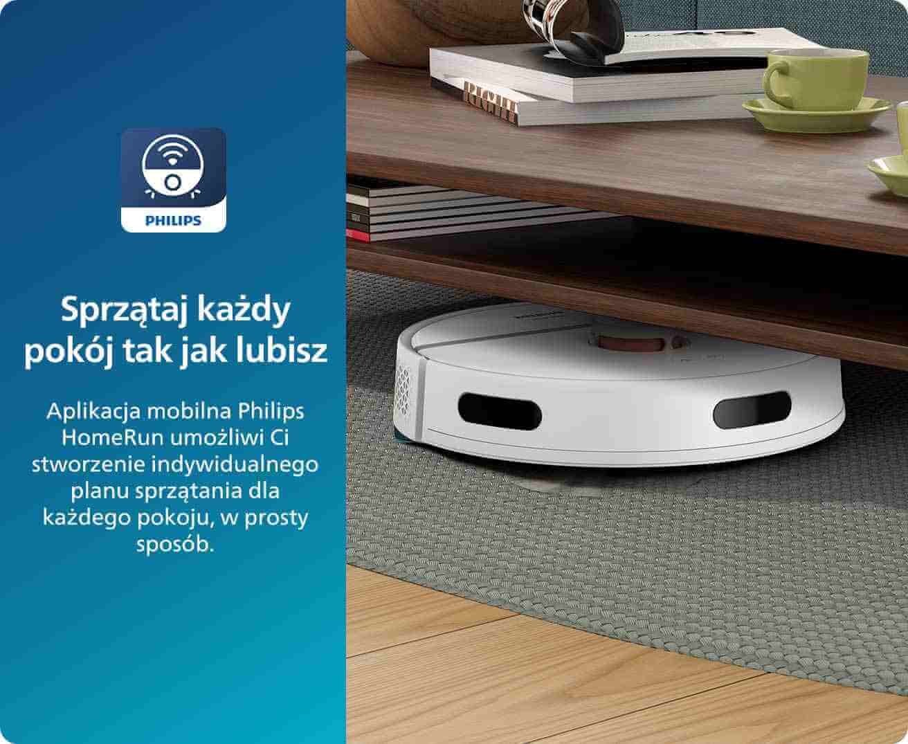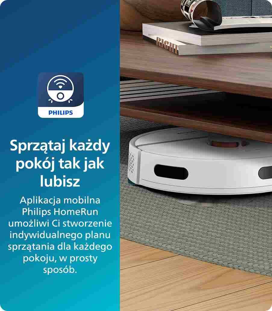 Bateria Philips HomeRun o pojemności 4800 mAh zapewnia wyjątkowo długi czas pracy wynoszący 200 minut, umożliwiając sprzątanie 150 m² powierzchni podłogi za jednym razem.