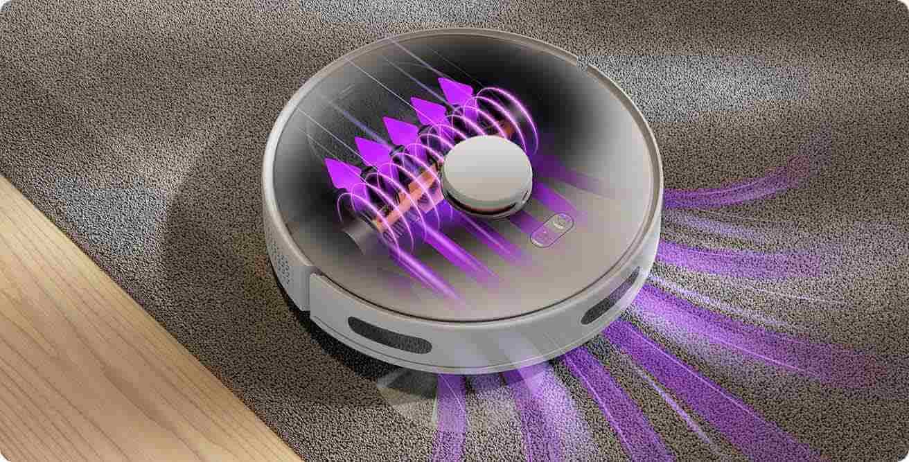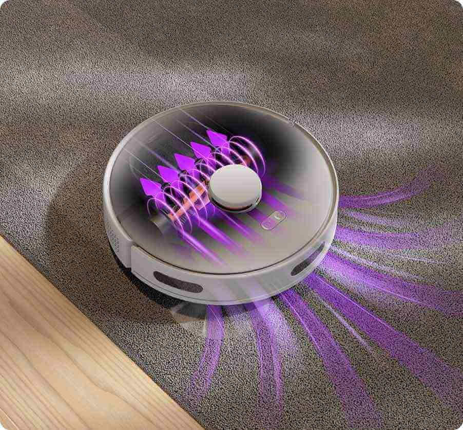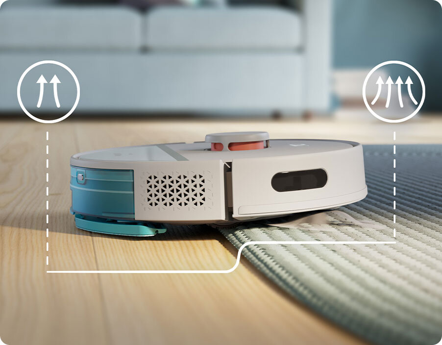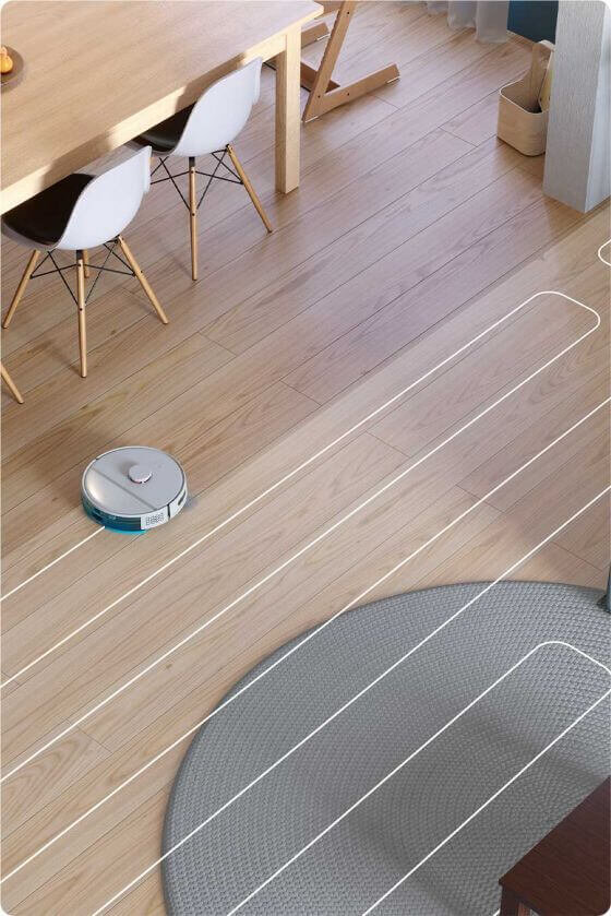 Zaawansowany system nawigacyjny LiDAR 360° pozwala robotowi na skuteczne poruszanie się pomiędzy pokojami oraz między meblami, znajdując najbardziej optymalną drogę sprzątania. Dzięki temu urządzenie ma możliwość dotarcia do każdego kąta i zbliżenia się do ścian, by nie ominąć żadnego miejsca.