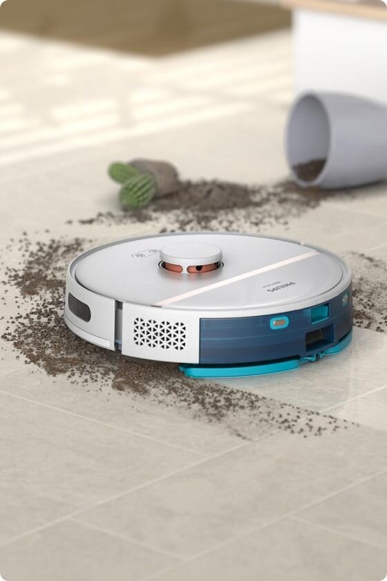 Dzięki zaawansowanej technologii sprzątania robota możesz w pełni komfortowo chodzić po swojej podłodze boso. Kombinacja odkurzania i mycia usuwa nawet najdrobniejsze cząsteczki kurzu, pozostawiając powierzchnie lśniąco czyste i wolne od zanieczyszczeń.