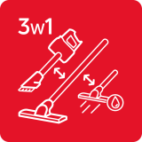 Odkurzaj i mopuj jednocześnie! Specjalny system myjący pozwoli Ci usunąć kurz, brud i plamy. Napełnij zbiornik wodą, załóż nakładkę mopującą wraz ze ściereczką, przymocuj do szczotki i gotowe!