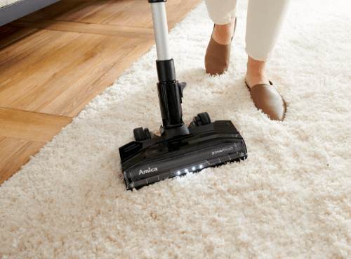 Silnik o mocy 10W umieszczony w elektroszczotce pozwala na łatwiejsze odkurzanie dywanów z długim włosiem.