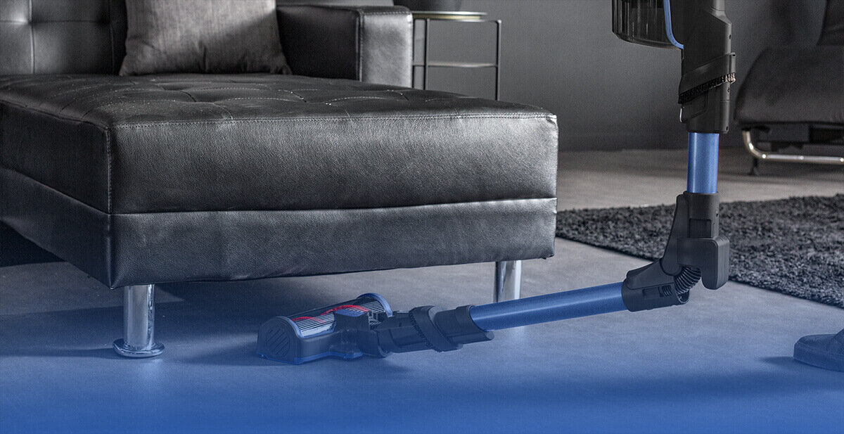 Odkurzaj do 4x bardziej skutecznie i bez schylania, nawet pod niskimi meblami, dzięki unikalnej zginanej rurze z technologią FLEX.