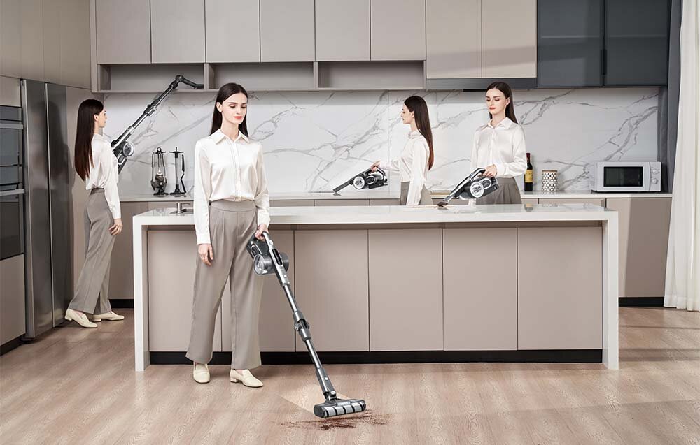 Odkurzacz bezprzewodowy H8 Flex został wyposażony w wygodny wyświetlacz LED. Dzięki niemu w czasie rzeczywistym możesz zobaczyć informacje takie jak pozostały tryb pracy, tryb zasilania, stężenie pyłu czy przypomnienie o błędzie. Dodatkowo inteligentny czujnik kurzu wyraźnie wyświetli jego poziom w twoim domu oraz wykryje ten, którego normalnie nie widzisz. Ta funkcja sprawia, że już nigdy niczego nie przegapisz, a twój dom będzie błyszczał czystością.