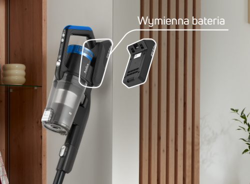 Możliwość wymiany baterii litowo-jonowej na nową sprawia, że odkurzacz cechuje się większą żywotnością.