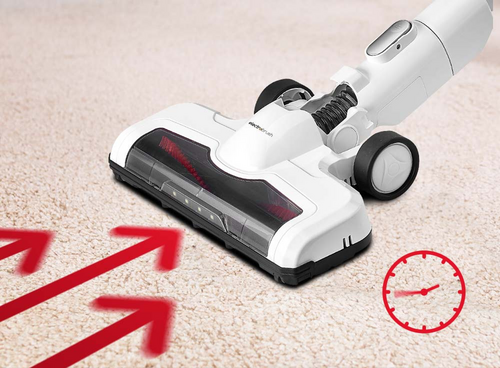 Silnik o mocy 10W umieszczony w elektroszczotce pozwala na łatwiejsze odkurzanie dywanów z długim włosiem.