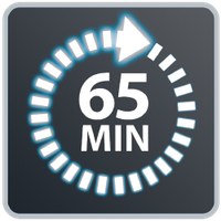 Swobodne odkurzanie bez kabla nawet do 65 minut w trybie min (do zbierania mniejszych zabrudzeń) dzięki baterii litowo-jonowej o napięciu 25,2 V.