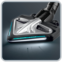 Skuteczne odkurzanie nawet trudno dostępnych miejsc np. kątów czy ciemnych miejsc np. pod meblami dzięki trójkątnej szczotce Delta z podświetleniem LED.