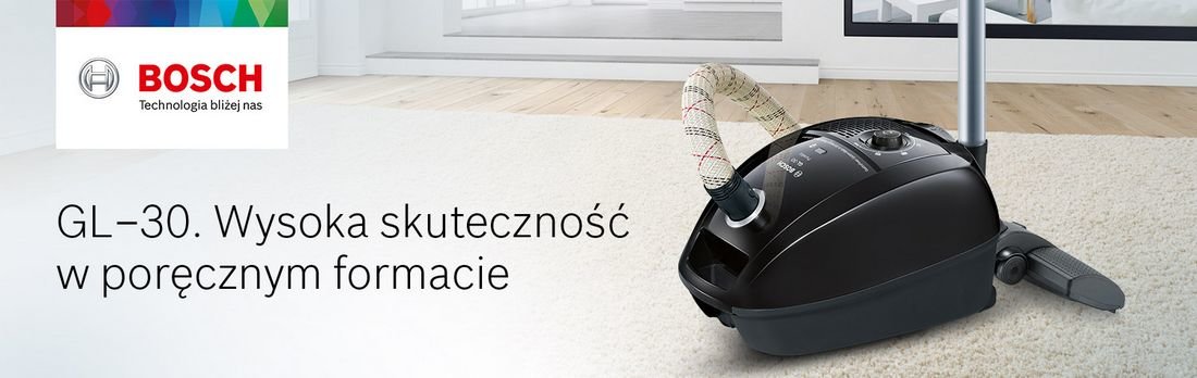 Odkurzacze GL-30 marki Bosch, poza wysoką skutecznością, przekonują także wieloma detalami łączącymi funkcjonalność z estetyką. Dzięki niewielkim rozmiarom i wyjątkowej zwrotności zmieszczą się wszędzie i bez trudu odkurzą wszystkie zakamarki. Wyjątkowo długi przewód i wąż ssący z wytrzymałej plecionki gwarantują swobodną pracę w promieniu 10 metrów. Odkurzacz BGL3ECO11 posiada klasę energetyczną A+ co oznacza, że jest wyjątkowo energooszczędny.
