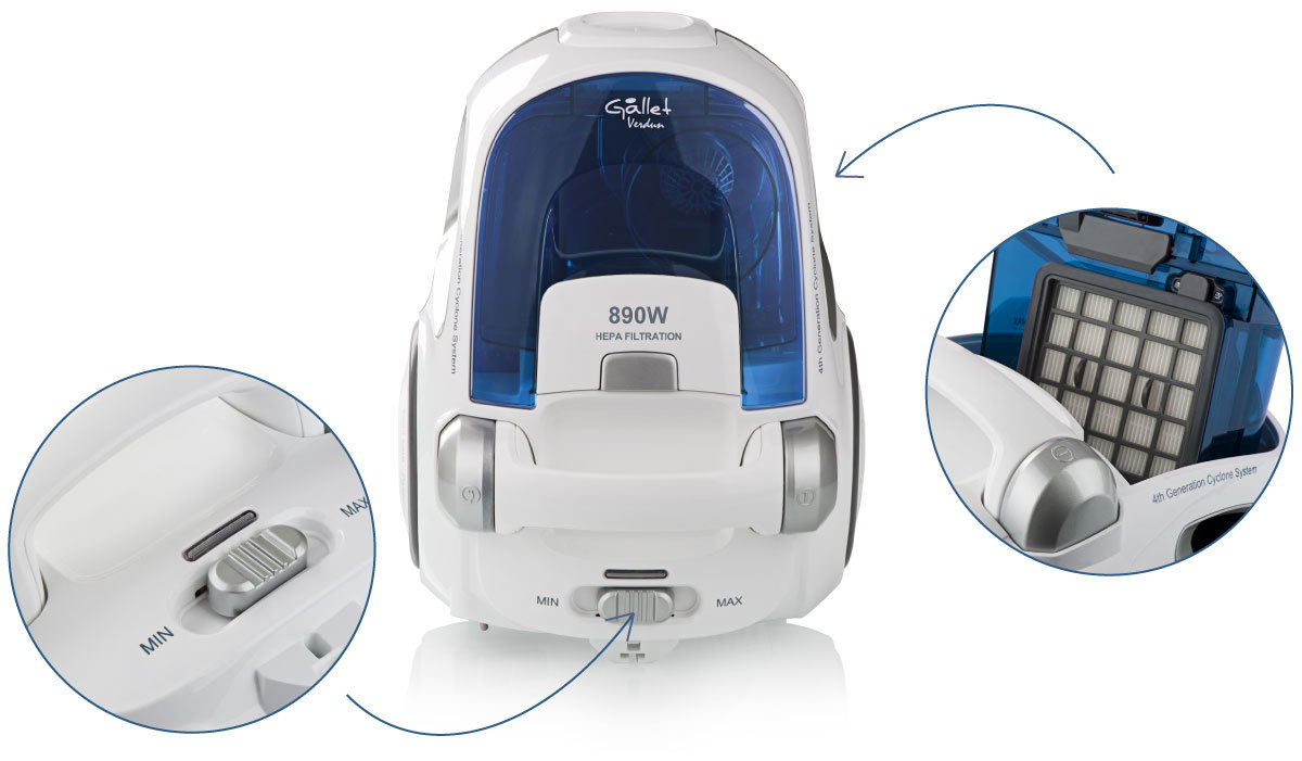 • Elektroniczna regulacja dla ustawienia optymalnej mocy ssania