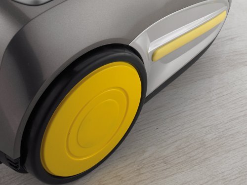 Pokryte gumą kółka delikatnie jeżdżą po podłodze nie zostawiając śladów nawet na miękkim parkiecie. Nawet przy otarciu się o meble nie trzeba się martwić o żadne uszkodzenia. |