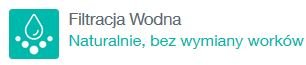 Odkurzacze używające technologii filtracji wodnej nie potrzebują worków. Zamiast do worka zanieczyszczenia trafiają do pojemnika wypełnionego wodą. Przy filtrowaniu zassanego powietrza do odkurzacza woda zatrzymuje wszystkie. |