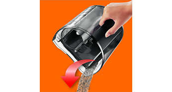 | Zaawansowany pojemnik na kurz, który można łatwo opróżnić Pojemnik można opróżnić, nie wzbijając w powietrze kłębów kurzu. Jego wyjątkowy kształt i gładka powierzchnia sprawiają, że kurz zbiera się po jednej stronie i równomiernie zsuwa się do kosza na śmieci. |