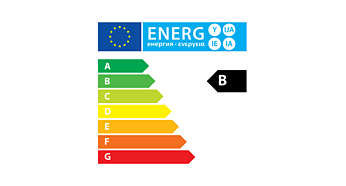 Klasa efektywności energetycznej B Ten odkurzacz został stworzony z myślą o uzyskaniu najwyższej wydajności przy zachowaniu klasy efektywności energetycznej B. |