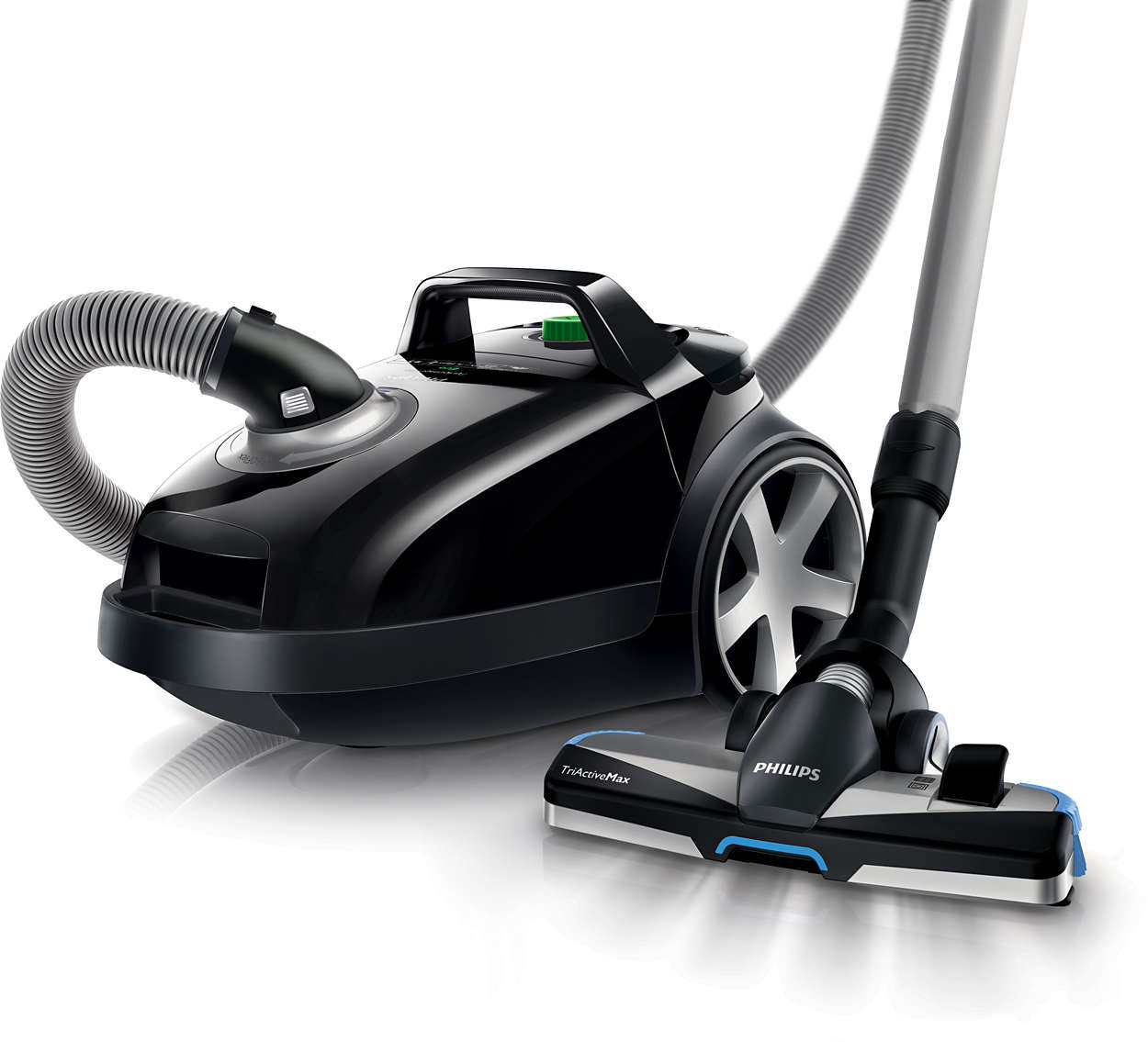| Najwyższa efektywność Mniejsze zużycie energii -Filtr HEPA13 -Klasa efektywności energetycznej A -Nasadka TriActiveMax -Technologia AirflowMax |