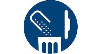 | Zaawansowany pojemnik na kurz, który można łatwo opróżnić Pojemnik można opróżnić, nie wzbijając w powietrze kłębów kurzu. Jego wyjątkowy kształt i gładka powierzchnia sprawiają, że kurz zbiera się po jednej stronie i równomiernie zsuwa się do kosza na śmieci. |