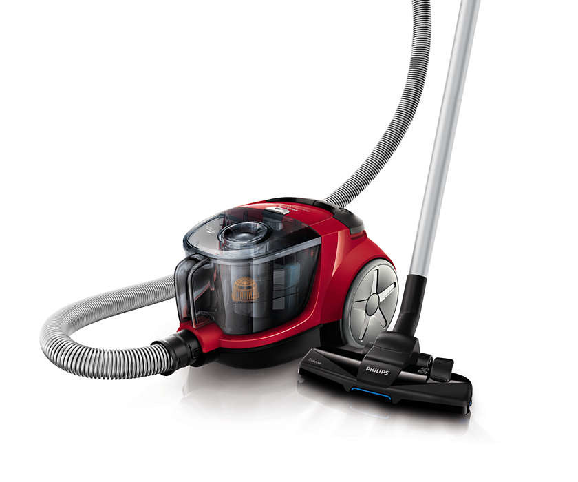 Technologia PowerCyclone 4 natychmiast oddziela kurz od powietrza Technologia PowerCyclone 4 maksymalizuje przepływ powietrza i wydajność, natychmiastowo oddzielając kurz od powietrza. Zapewnia wspaniałe efekty odkurzania w dwóch niezwykle skutecznych krokach: 1) Powietrze szybko wpływa do komory PowerCyclone dzięki prostemu i gładkiemu wlotowi. 2) Zakrzywiony przepust powietrza przyspiesza jego ruch w górę w komorze cyklonicznej, co powoduje oddzielanie się kurzu od powietrza. |