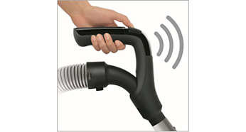 | Pilot zdalnego sterowania ErgoGrip — włączanie i wstrzymywanie bez konieczności schylania się Pilot zdalnego sterowania ErgoGrip umożliwia łatwe manewrowanie nasadką w trudno dostępnych miejscach. Zintegrowany pilot ułatwia zwiększanie i zmniejszanie mocy, a nawet wyłączanie odkurzacza. |