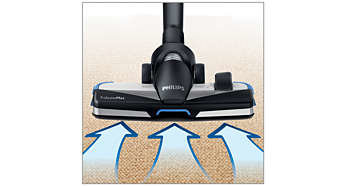 | Uniwersalna nasadka Nasadka TriActiveMax zapewnia idealne przyleganie do podłogi i wykonuje 3 czynności w jednym kroku, aby dokładnie wyczyścić podłogi: 1) Specjalnie zaprojektowana stopa delikatnie „otwiera” dywan w celu dokładnego usunięcia kurzu. 2) Duży otwór z przodu wysysa duże cząsteczki. 3) Szczotki boczne gwarantują doskonałe efekty czyszczenia wzdłuż cokołów. |