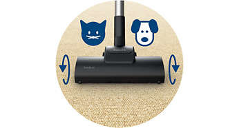| Turboszczotka zbierająca sierść Turboszczotka głęboko czyści dywany oraz szybko usuwa z nich włosy i kłaczki kurzu. Obrotowa szczotka znajdująca się wewnątrz usuwa drobiny kurzu i sierść, dzięki czemu podłogi są czystsze. Jest ona wyposażona w kółka, które zapobiegają powstaniu uszkodzeń w przypadku użycia jej na twardej podłodze. |