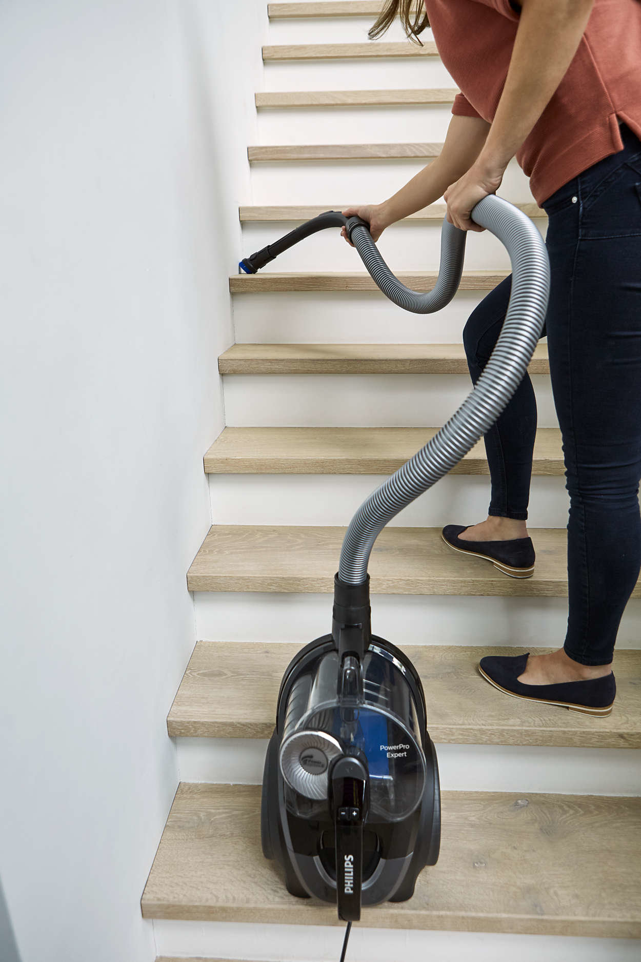 Model Philips PowerPro Expert opracowano z myślą o doskonałym odkurzaniu z pomocą dużej mocy ssania. Technologia PowerCyclone 8 i nasadka TriActive+ zapewniają znakomite rezultaty w przypadku każdego rodzaju podłogi. |