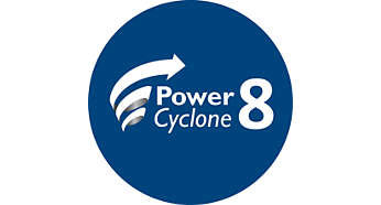 | Technologia PowerCyclone 8 oddziela kurz od powietrza Wyjątkowa technologia Exclusive PowerCyclone 8 szybko przyspiesza ruch powietrza w komorze cyklonicznej, aby oddzielić kurz. Silny ruch wirowy maksymalizuje przepływ powietrza i wydajność, zapewniając wspaniałe efekty odkurzania. |