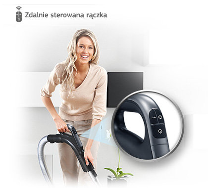 | Sterowanie w rączce na podczerwień To niezwykle wygodne rozwiązanie umożliwia sterowanie mocą odkurzacza z poziomu rączki. Specjalnie zaprojektowany uchwyt wygodnie leży w dłoni i pozwala w łatwy sposób prowadzić odkurzacz. |