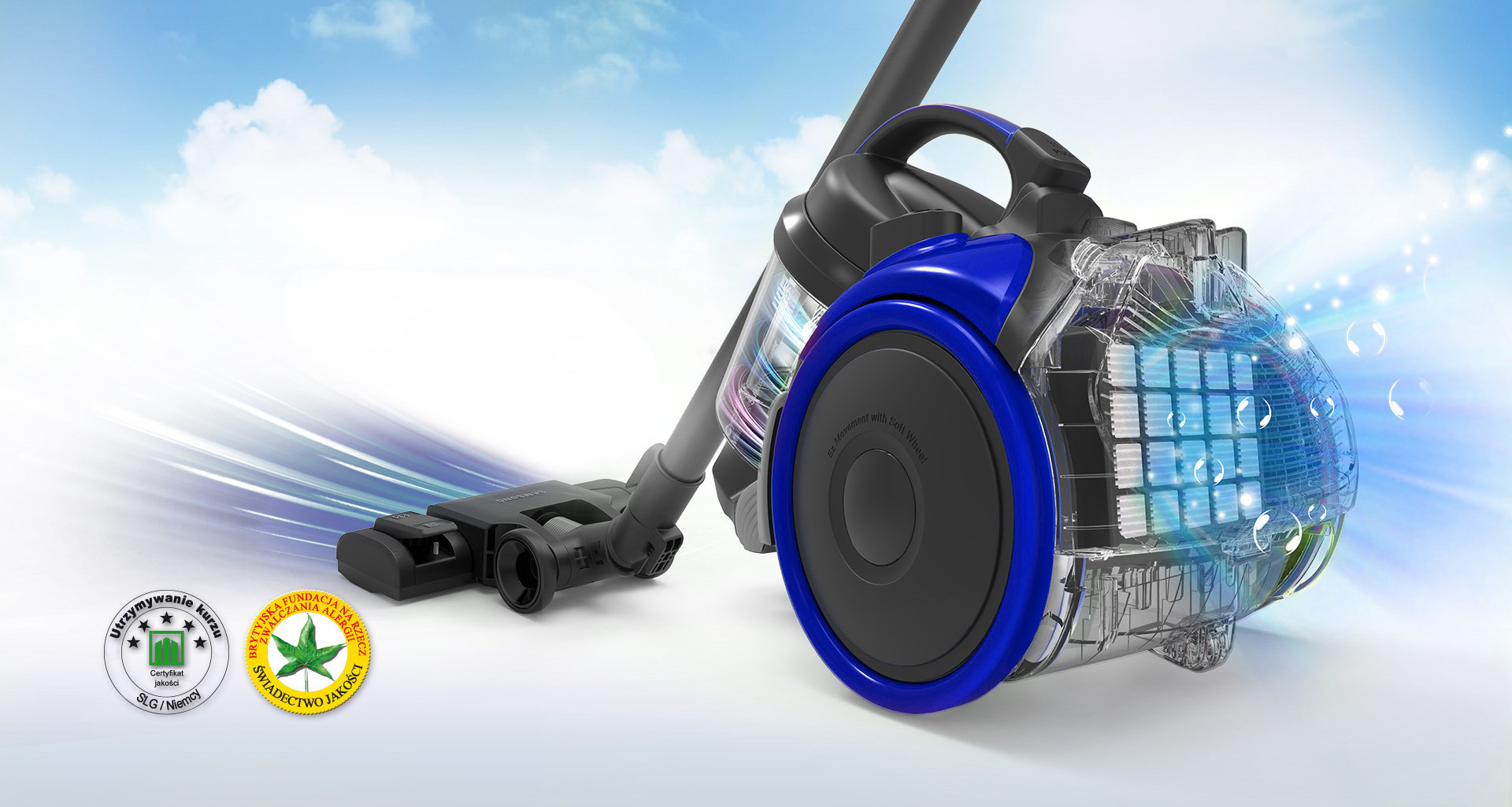 W trosce o zdrowie Czy odkurzanie wywołuje u Ciebie lub Twoich bliskich reakcje alergiczne? Filtracja przeciwkurzowa i antyalergiczna w odkurzaczu Samsung zapobiega przedostawaniu się pyłów na zewnątrz, co potwierdzają badania instytutów alergologicznych SLG i BAF. |
