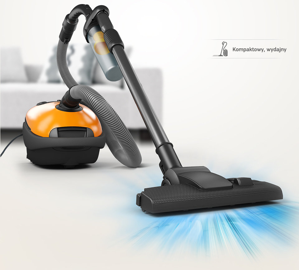Kompaktowa obudowa, duża moc ssąca Nie przegap nawet cząsteczki kurzu. Odkurzacz Samsung jest niewielkich rozmiarów, dzięki czemu łatwo można nim manewrować i sprzątać we wszystkich zakamarkach. Duża moc ssąca zapewnia przy tym gruntowne i intensywne czyszczenie, szybko wychwytując cząsteczki kurzu. |