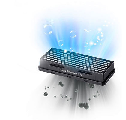 Filtracja HEPA Odkurzacz Samsung wyróżnia się zaawansowanym systemem filtracji HEPA. Filtracja HEPA nie tylko wychwytuje kurz i zanieczyszczenia, lecz także alergeny obecne w powietrzu. |