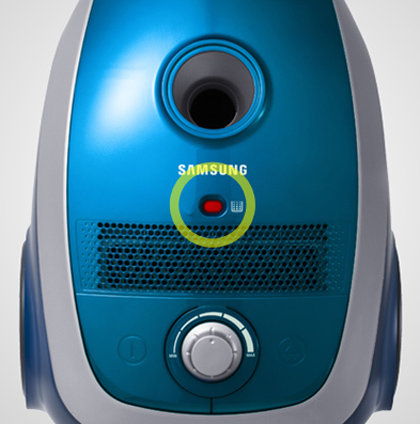 Wskaźnik zapełnienia worka ostrzega użytkowników, kiedy należy opróżnić worek na kurz i wymienić filtr. Worek należy wymienić, gdy wskaźnik jest koloru czerwonego.