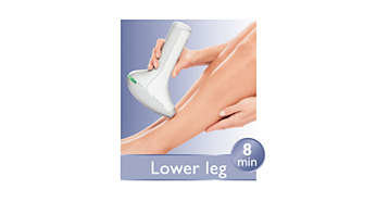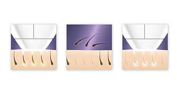 | Skuteczność bez wysiłku Nasze badania kliniczne wykazały znaczne zmniejszenie ilości włosów po czterech zabiegach (w dwutygodniowych odstępach), co pozwala uzyskać gładką skórę. Aby utrzymać te wyniki, wystarczy doraźnie powtarzać zabiegi. Czas między zabiegami może się różnić w zależności od indywidualnego tempa wzrostu włosów. |