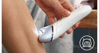 Nasz najszybszy depilator jest wyposażony w wyjątkowe dyski ceramiczne, które obracają się z większą prędkością oraz chwytają najdrobniejsze i najkrótsze włoski. Bardzo szeroka głowica pozwala depilować większą powierzchnię skóry przy każdym ruchu.