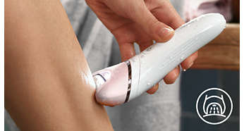 | Urządzenie jest wyposażone w system masujący System masujący łagodzi uczucie dyskomfortu podczas depilacji. |