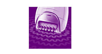 Nasadka do delikatnych miejsc zapewnia łagodną depilację Depilator jest wyposażony w nasadkę do delikatnych miejsc. Zaprojektowana specjalnie do depilacji wrażliwych partii ciała, umożliwia delikatniejszą depilację. |