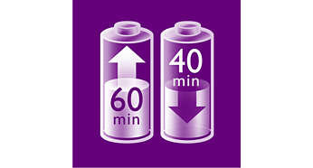 Sieć bezprzewodowa Do 40 minut bezprzewodowej depilacji, szybkie ładowanie w godzinę. |