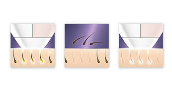 Urządzenie Philips Lumea kieruje impulsy światła do cebulek włosów. W rezultacie włosy w naturalny sposób wypadają, a proces ich odrastania zostaje zahamowany. Regularne powtarzanie zabiegu gwarantuje, że skóra pozostanie gładka każdego dnia.