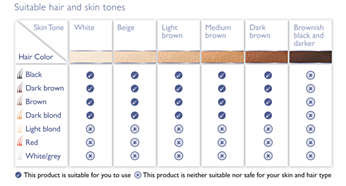 Urządzenie Philips Lumea działa skutecznie w przypadku włosów o naturalnych kolorach: ciemny blond, brązowy i czarny. Podobnie jak inne zabiegi wykorzystujące światło, Philips Lumea NIE działa skutecznie na takie kolory włosów, jak rudy, jasny blond, biały/siwy. To urządzenie NIE jest też przeznaczone do usuwania włosów z bardzo ciemnej skóry.