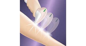 Urządzenie Philips Lumea oferuje pięć regulowanych ustawień energii świetlnej, które zapewniają delikatne, a jednocześnie skuteczne usuwanie owłosienia. Prawidłowo przeprowadzone zabiegi IPL z użyciem urządzenia Philips Lumea są bezpieczne i łagodne — można je stosować również na wrażliwej skórze i delikatnych częściach ciała.